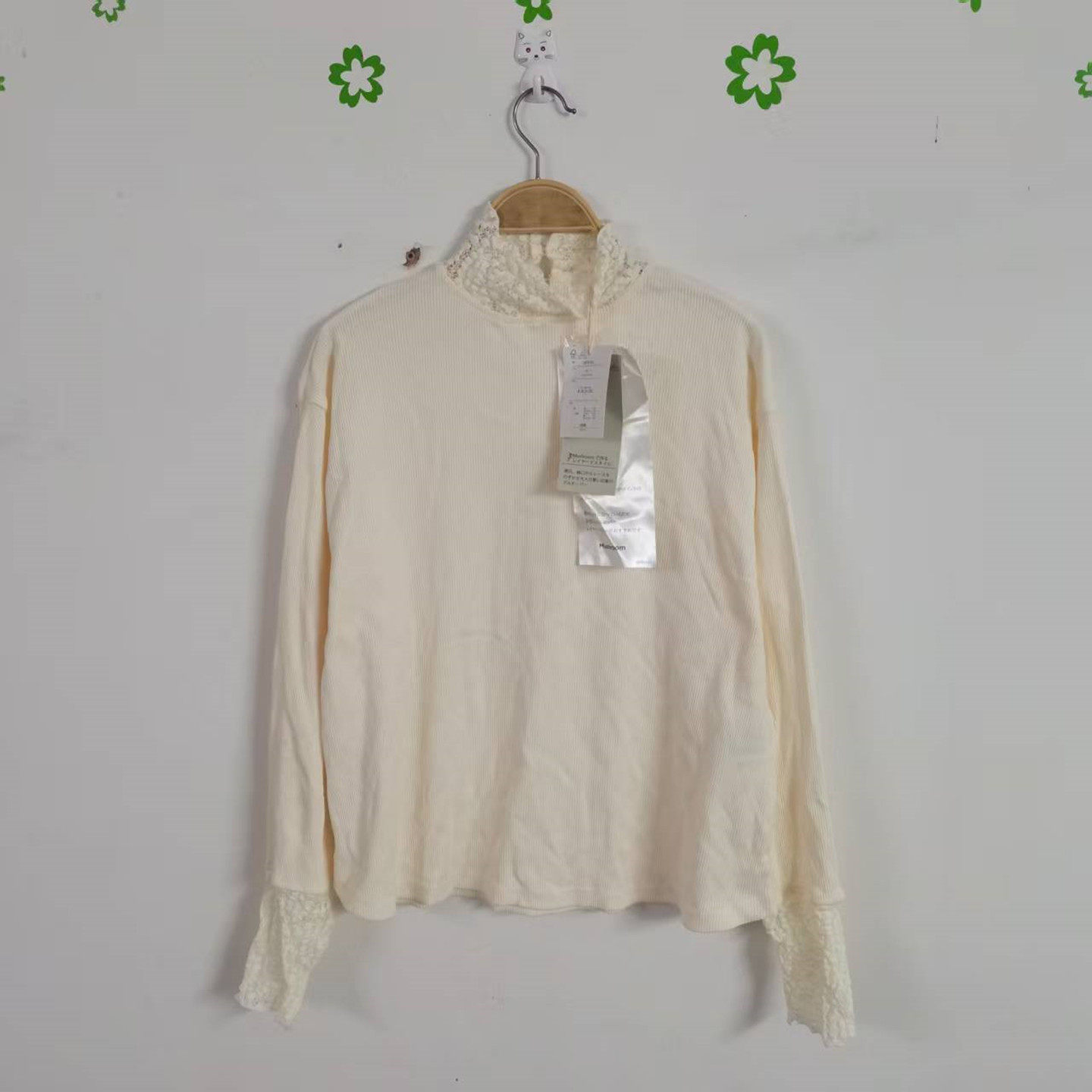 女装/女士精品 高品质日单包邮春季新款女装纯色蕾丝绣花拼接时尚打底长袖针织衫