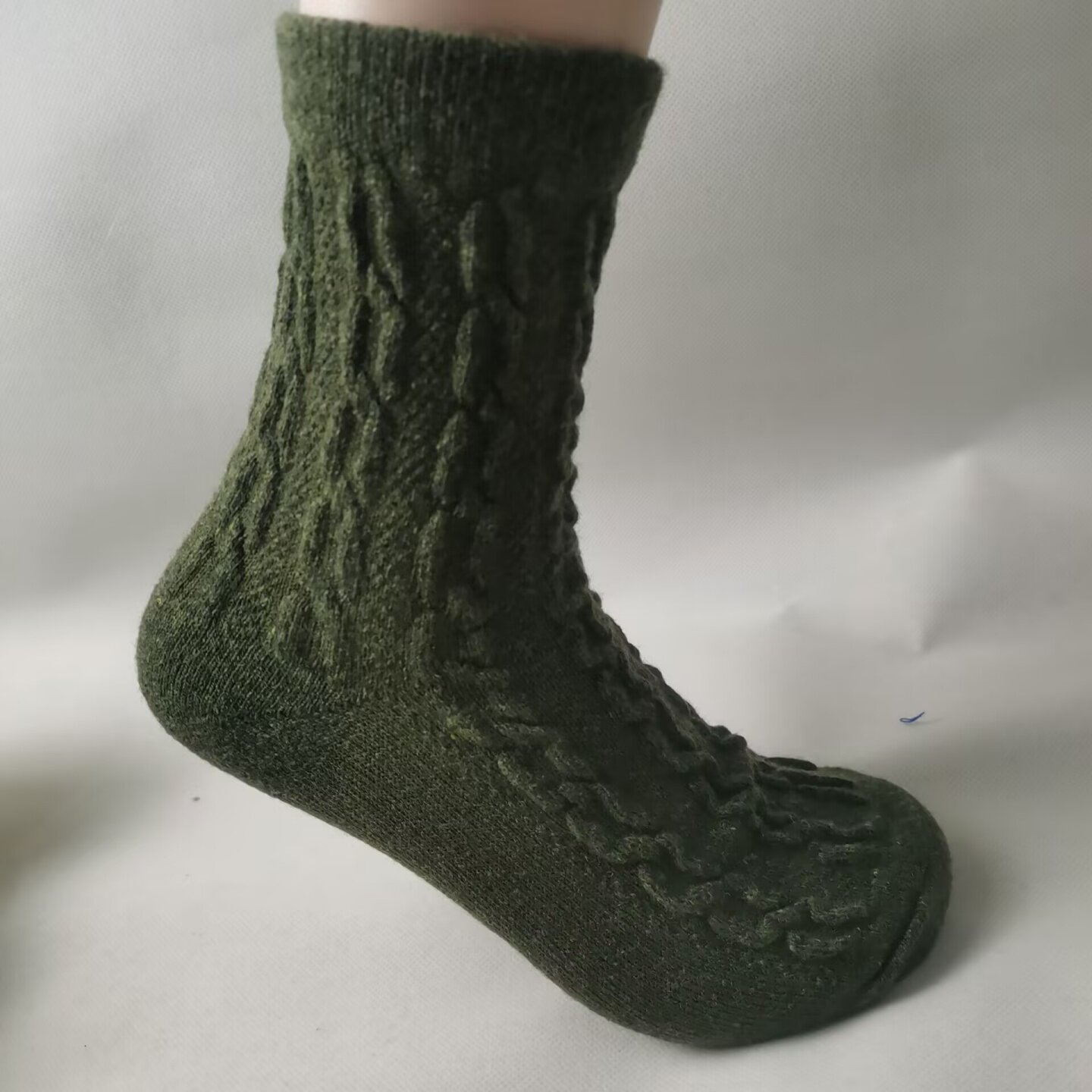 女士内衣/男士内衣/家居服 日系女士羊毛立体浮雕中筒袜女秋冬季保暖加厚军绿色麻花纹堆堆袜