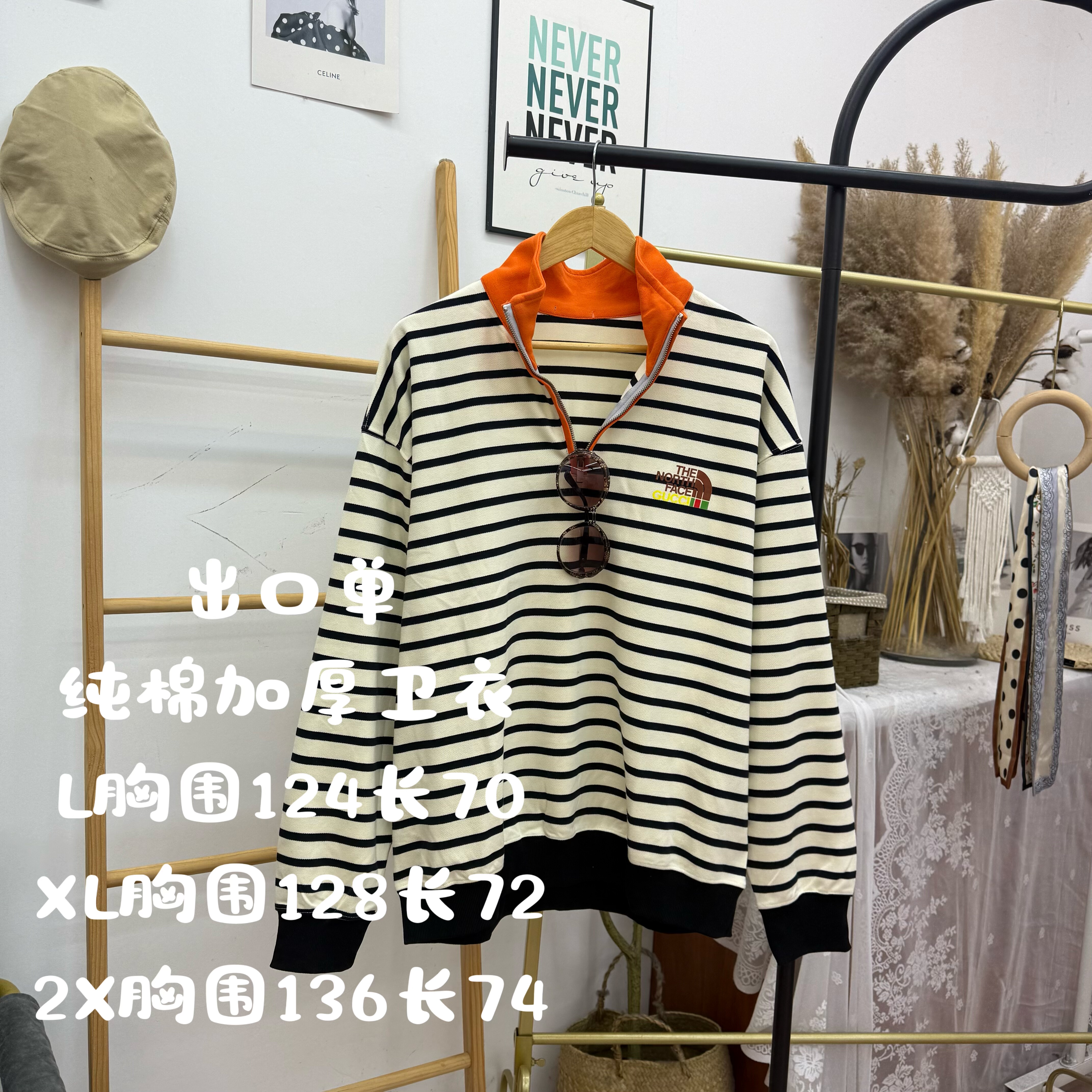 女装/女士精品 实体断码 出口单 加厚条纹半高领卫衣7