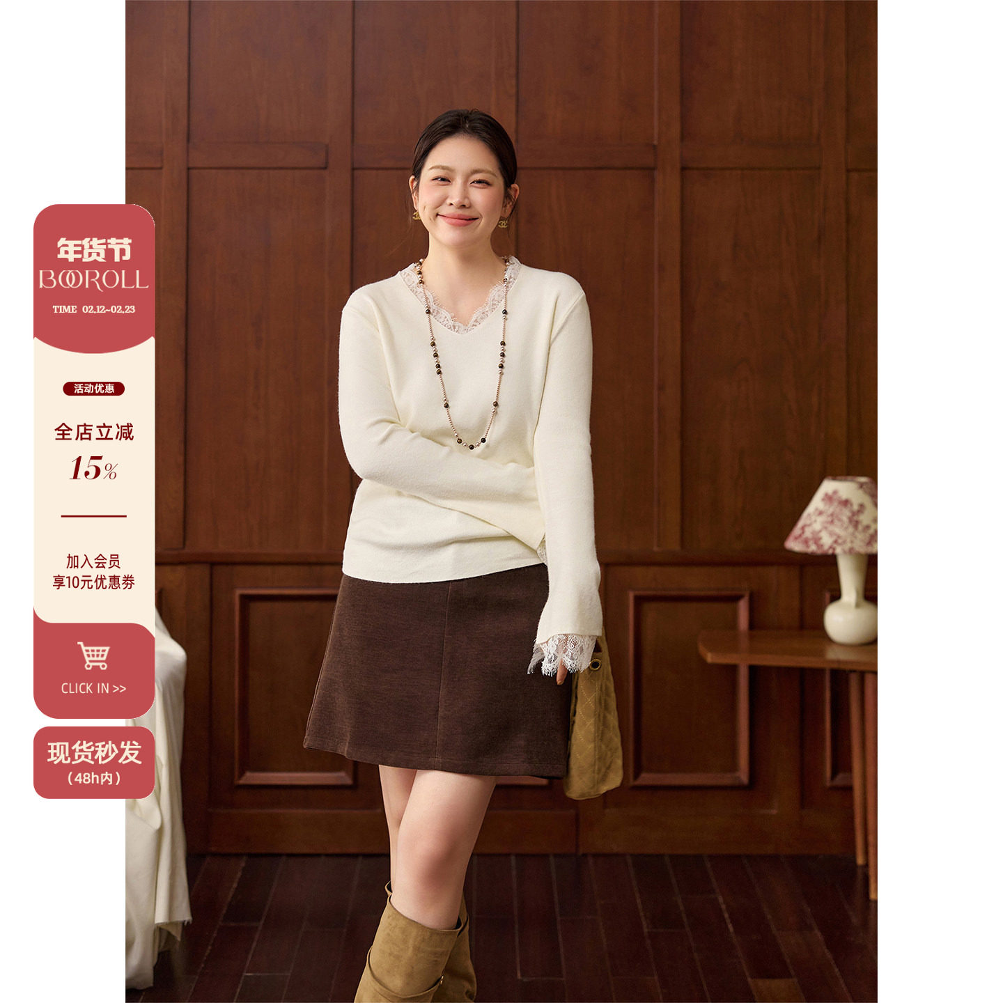 女装/女士精品 潘不卷大码女装微胖mm白色蕾丝内搭打底针织衫秋冬长袖毛衣上衣
