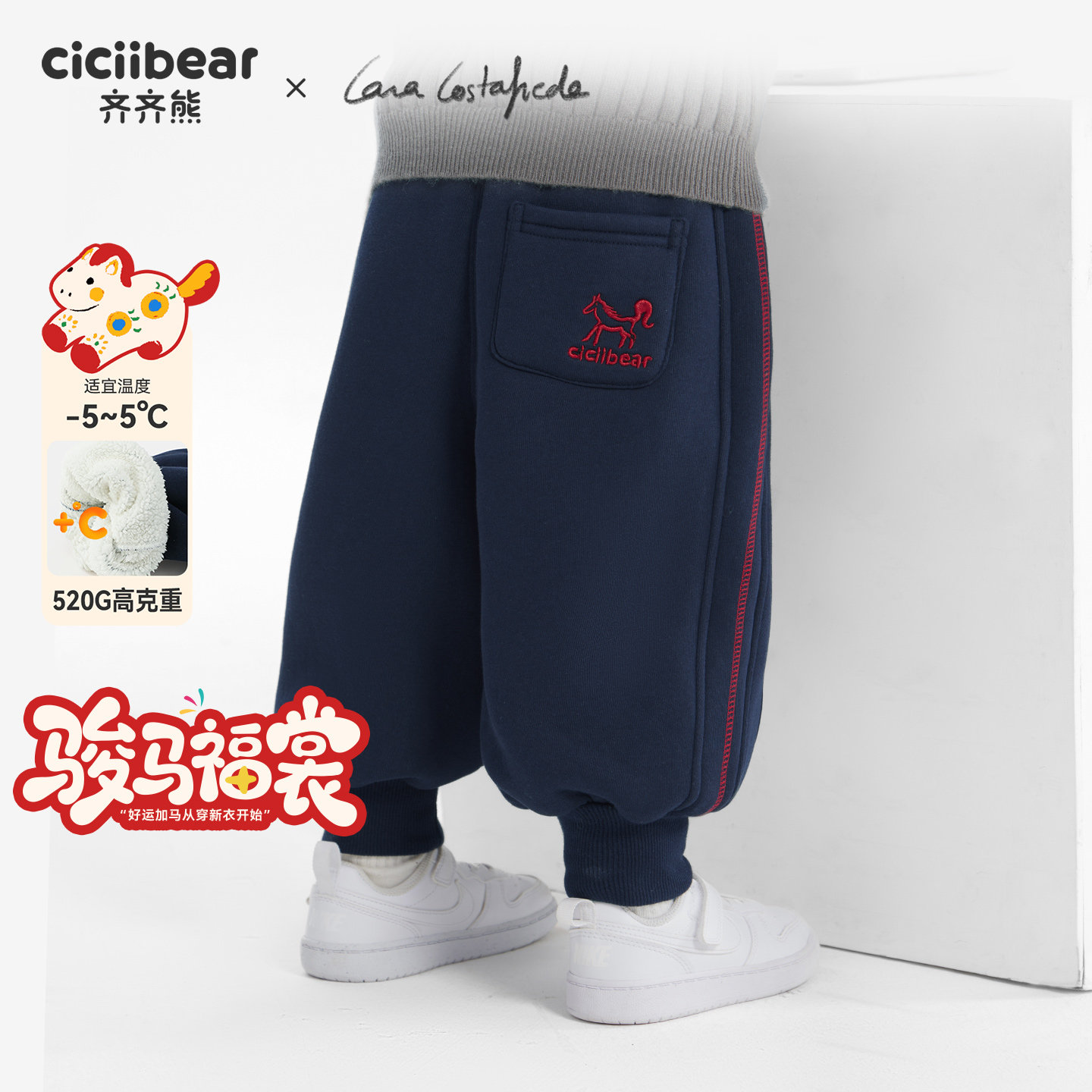 童装/婴儿装/亲子装 [大师联名520G一体绒]齐齐熊宝宝裤子新年男童冬加绒长裤儿童卫裤