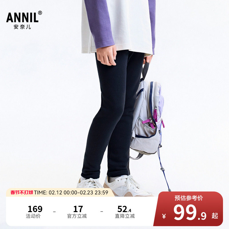 童装/婴儿装/亲子装 【商场同款】安奈儿童装女童打底裤冬新款加绒加厚AG546148