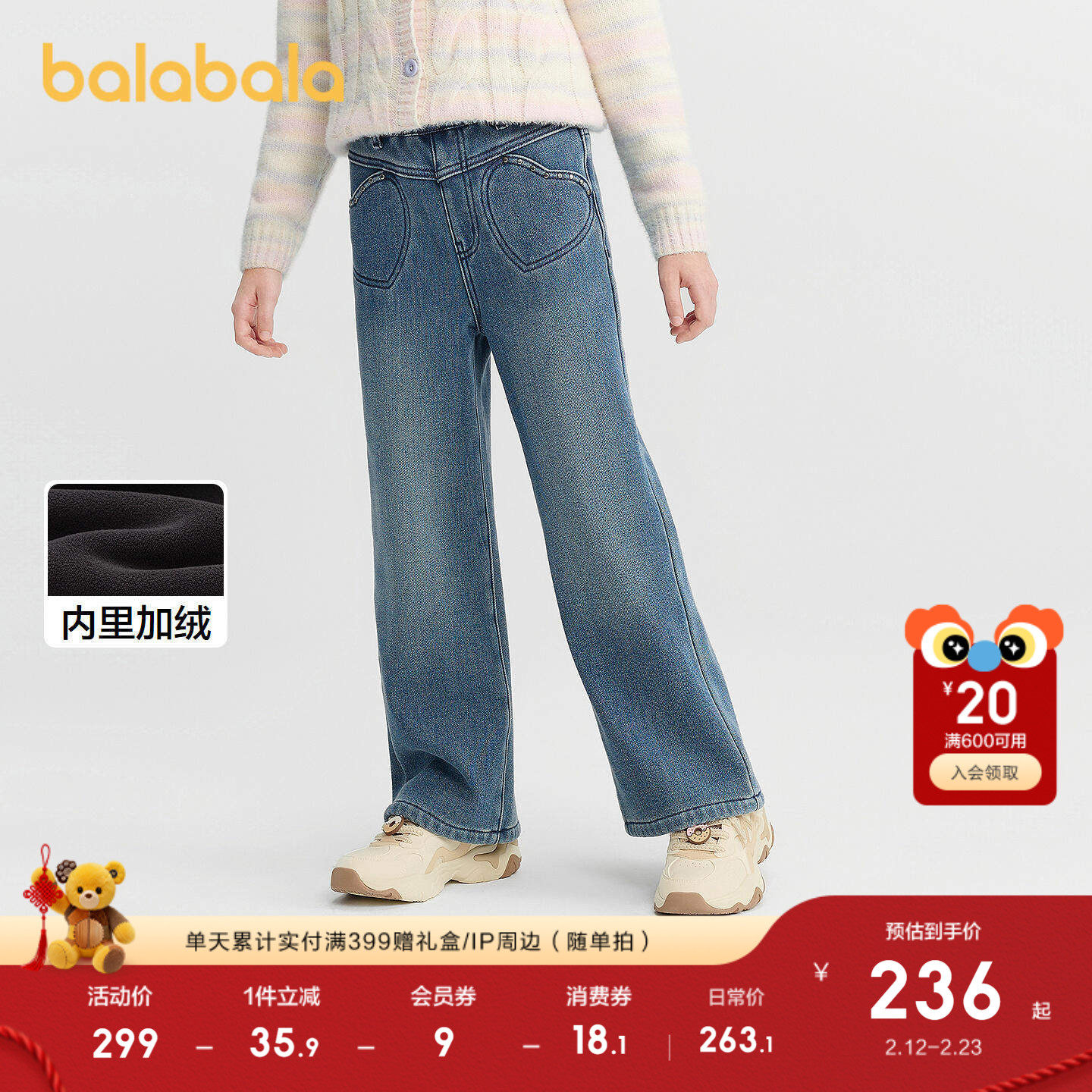 童装/婴儿装/亲子装 【商场同款】巴拉巴拉童装女童加绒直筒儿童裤子2025冬新款牛仔裤