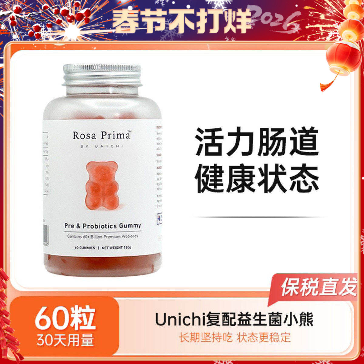保健食品/膳食营养补充食品 Unichi复配益生菌小熊软糖噗噗糖肠胃免疫力调理0蔗糖玫瑰酸奶味