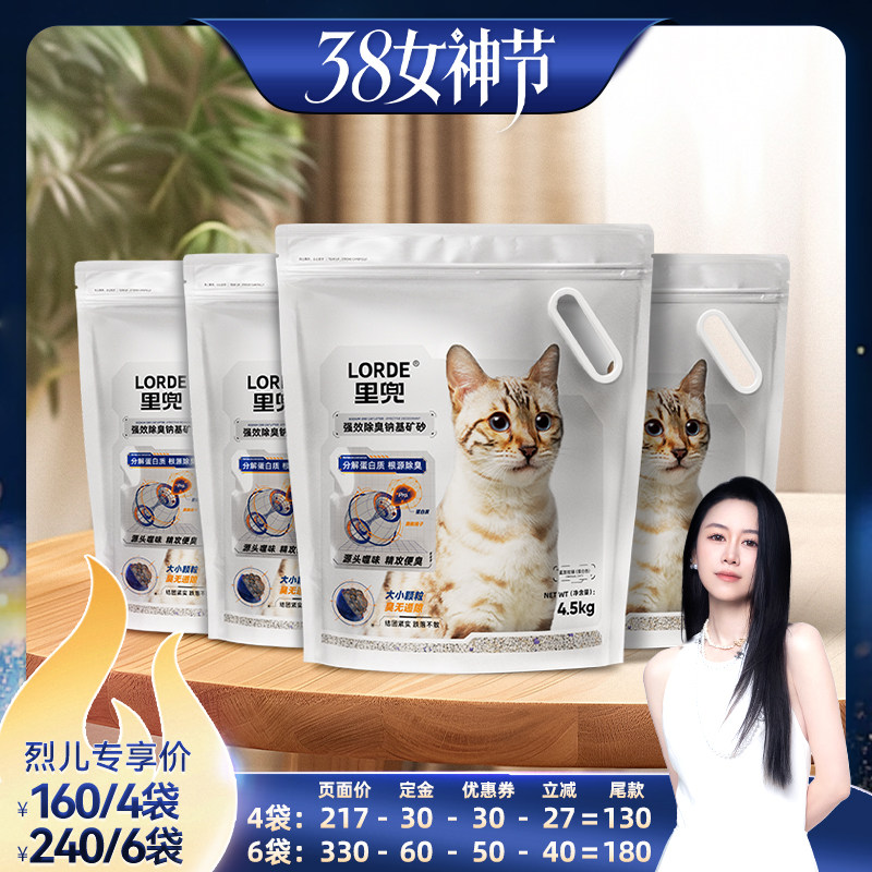 宠物/宠物食品及用品 【先加购!24号烈儿0元付定】里兜猫砂小银钻矿砂除臭钠基矿砂4袋