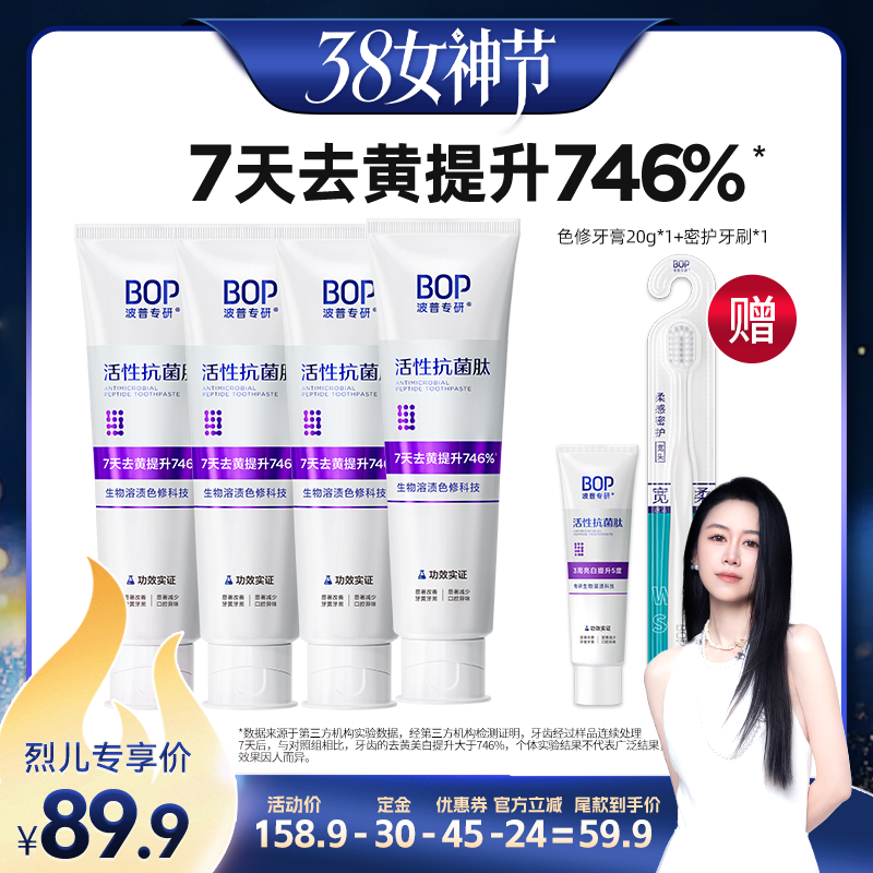 洗护清洁剂/卫生巾/纸/香薰 【先加购!24号烈儿0元付定】 BOP抗菌肽色修美白牙膏含氟牙齿db