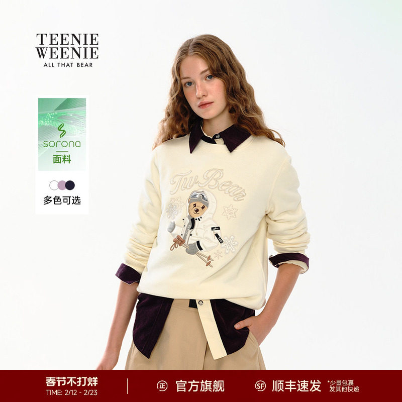 女装/女士精品 TeenieWeenie小熊女装卫衣冬季休闲舒适基础大熊刺绣圆领内搭上衣