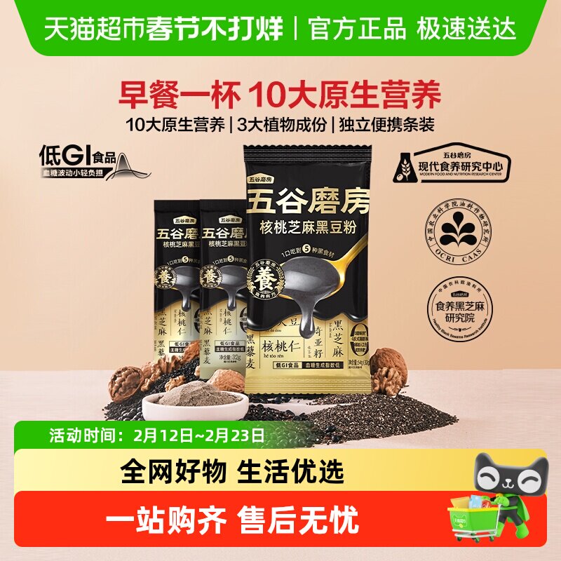 咖啡/麦片/冲饮 五谷磨房核桃芝麻黑豆粉黑芝麻糊尝鲜装营养早餐五黑粉