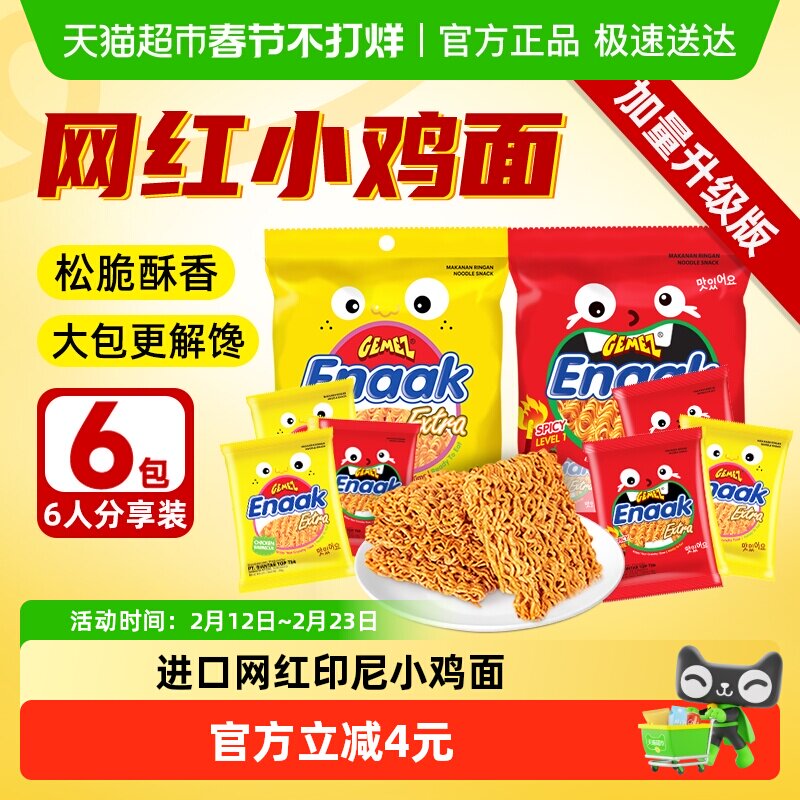 零食/坚果/特产 进口印尼GEMEZ烧烤30g*3+香辣28g*3小鸡点心干脆面网红零食品小吃