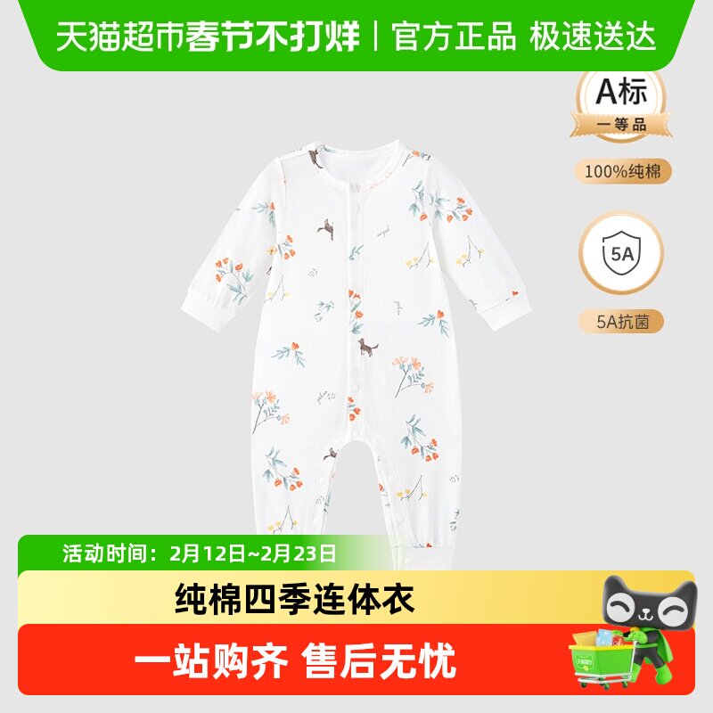 童装/婴儿装/亲子装 【5A抗菌】英氏宝宝哈衣夏季新生儿纯棉婴儿衣服四季连体衣新款