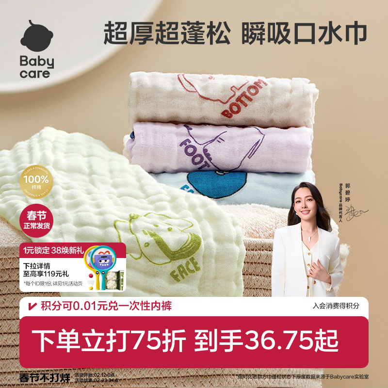 婴童用品 babycare婴儿口水巾新生儿用品纱布方巾儿童宝宝纯棉洗脸毛巾