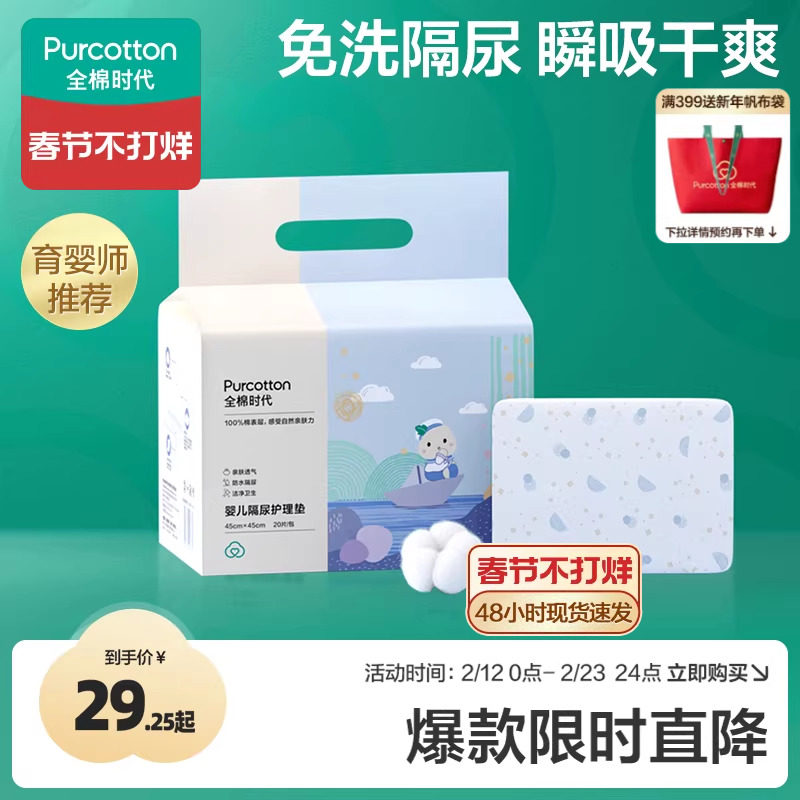 婴童尿裤 全棉时代婴儿一次性隔尿垫防水透气宝宝秋冬大尺寸姨妈垫床上用品