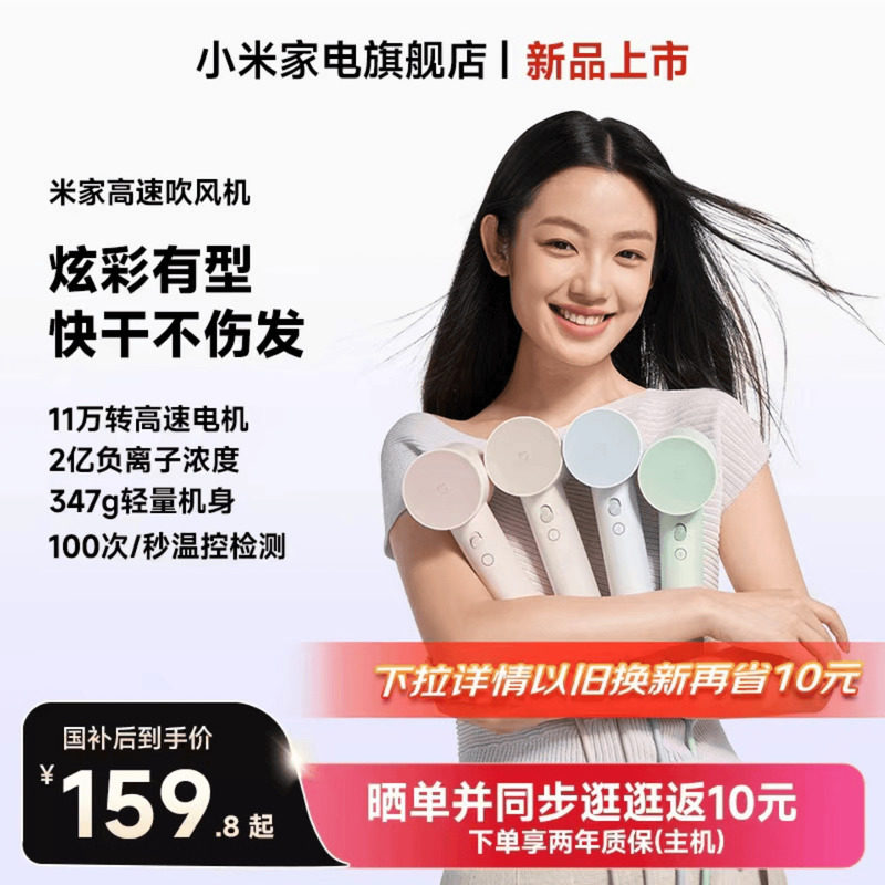 个人护理/保健/按摩器材 小米家电米家高速吹风机家用大风力负离子速干电吹风筒送女友礼物
