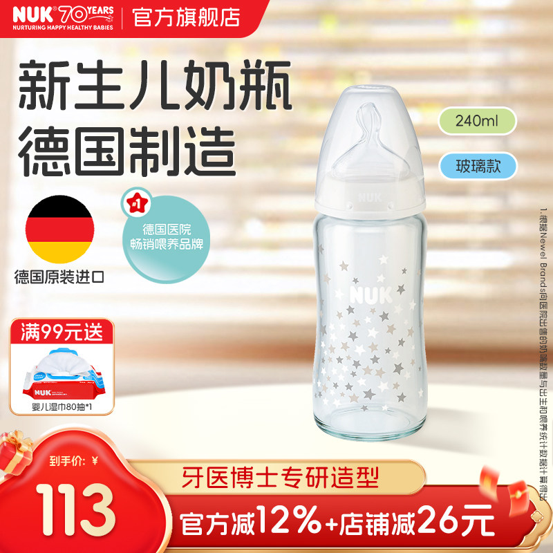 婴童用品 NUK德国宽口径玻璃奶瓶新生婴儿0到6个月初生专用3个月以上宝宝