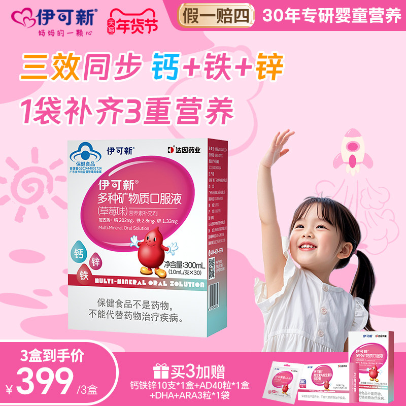 婴童食品 伊可新儿童钙铁锌口服液1岁+铁剂锌补充剂宝宝酸奶口感青少年补钙