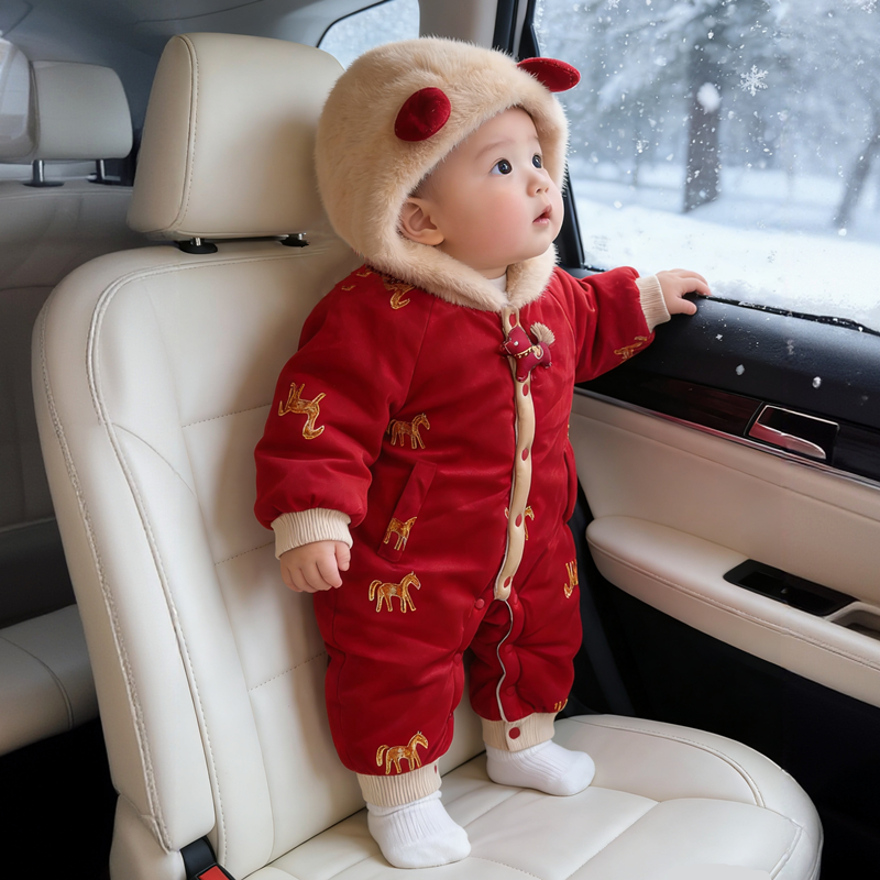童装/婴儿装/亲子装 马年婴儿夹棉连体衣拜年服冬装男女宝宝喜庆过年新中式红色汉礼服