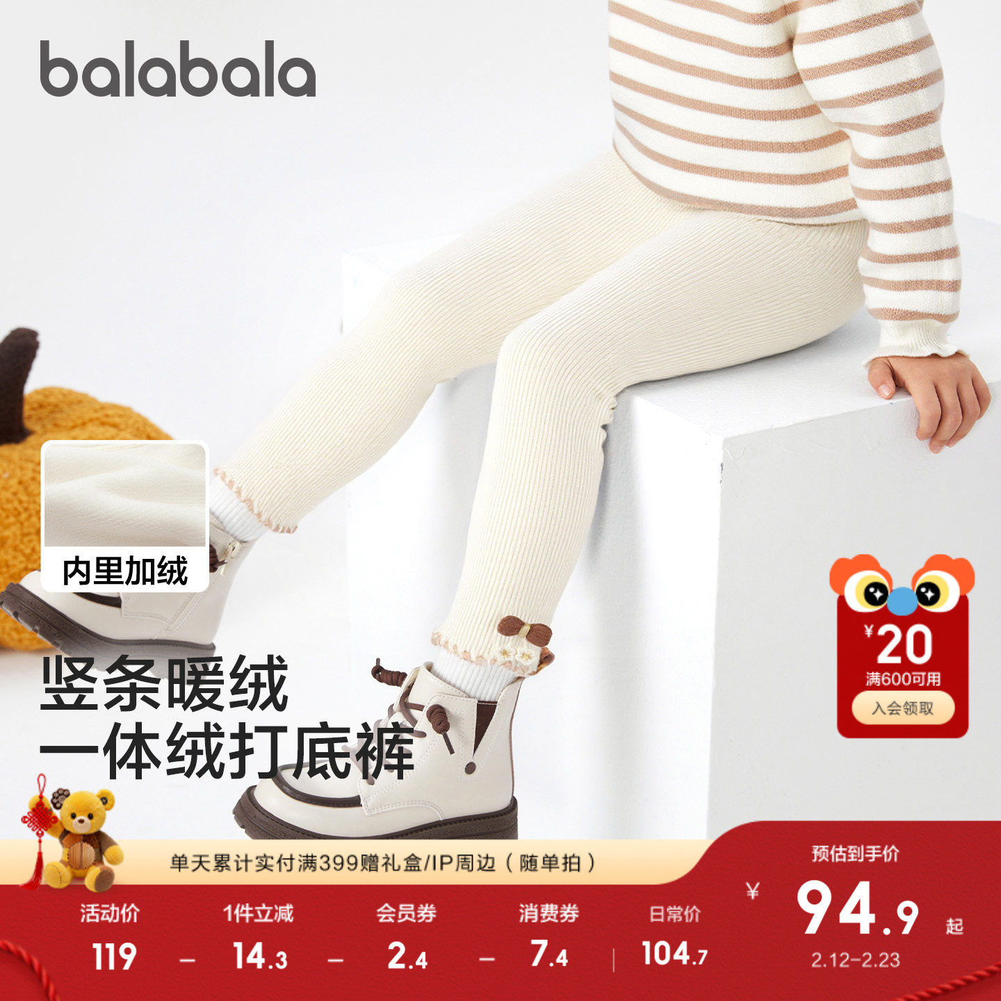 童装/婴儿装/亲子装 【商场同款】巴拉巴拉宝宝打底裤加绒舒适裤子秋冬女童装2025新款