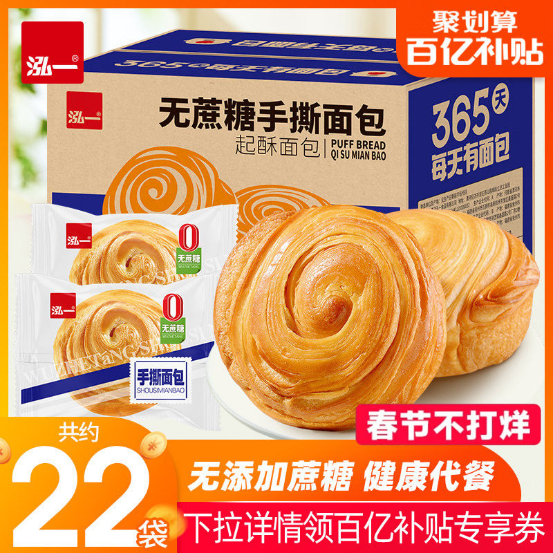 零食/坚果/特产 泓一无蔗糖圆手撕面包整箱早餐健康营养饱腹零食夜宵充饥代餐小吃