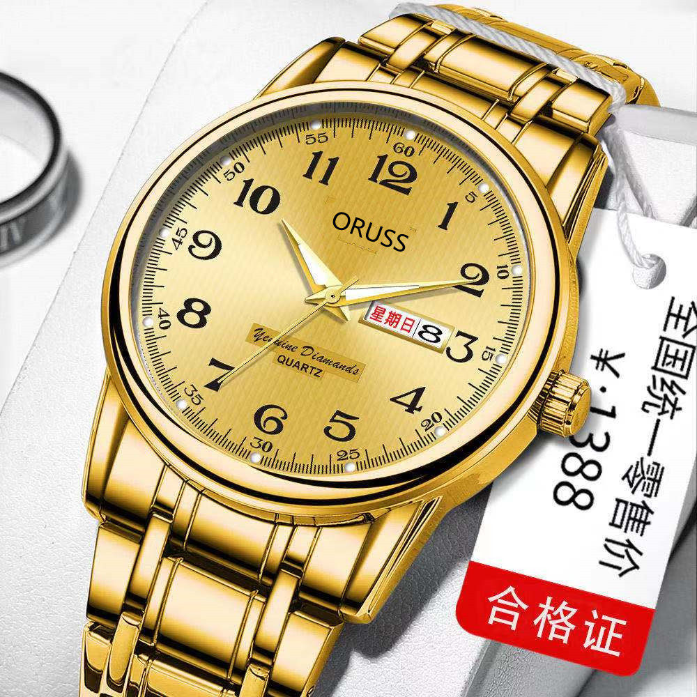 手表 【低价捡漏】瑞士全自动机芯手表土豪金双日历夜光防水男士潮流表