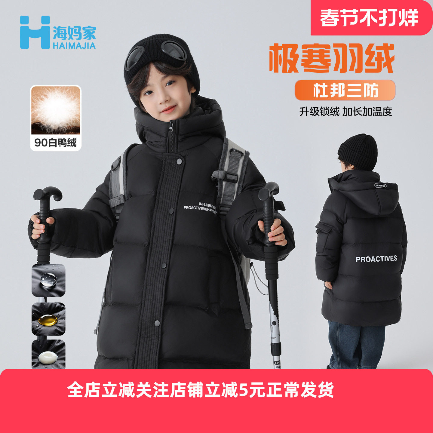 童装/婴儿装/亲子装 【低价捡漏】童装冬季男童中长款连帽冬装羽绒服外套90白鸭绒加厚