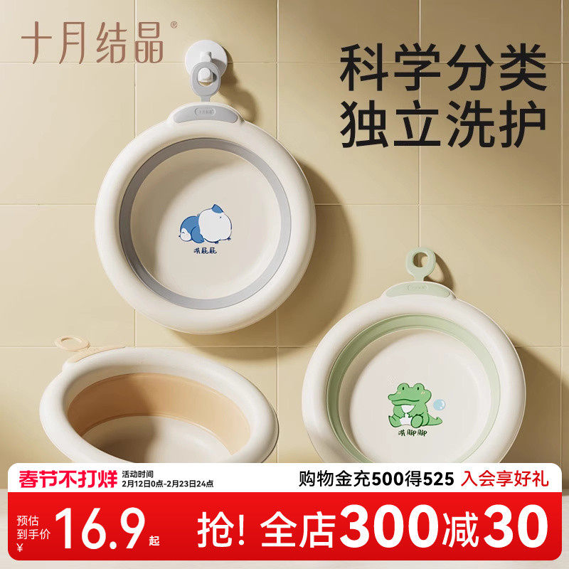 婴童用品 十月结晶婴儿洗脸盆初生宝宝盆洗脚洗pp盆儿童可折叠盆子大脸盆