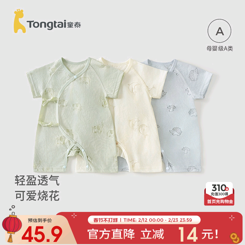 童装/婴儿装/亲子装 童泰婴儿短袖连体衣夏季薄款男女宝宝衣服新生儿哈衣爬服无骨睡衣