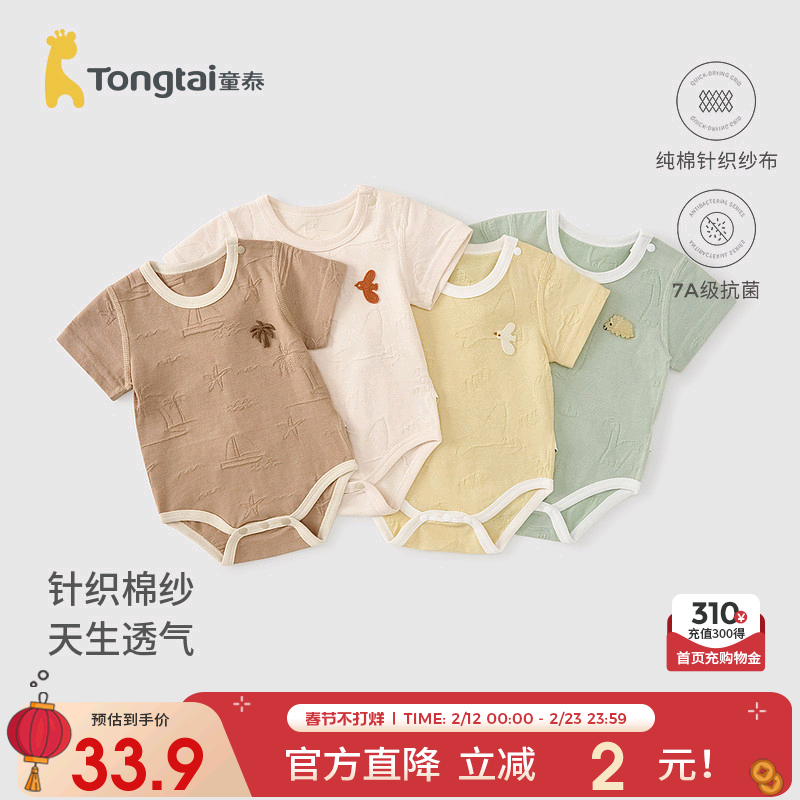 童装/婴儿装/亲子装 童泰婴儿短袖包屁衣夏季纯棉宝宝连体衣新生儿衣服三角哈衣爬服