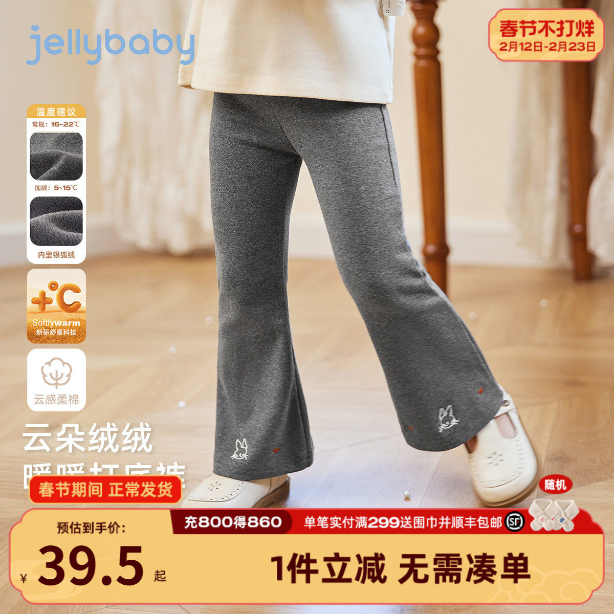 童装/婴儿装/亲子装 巴拉巴拉童装儿童长裤男女童2026冬装宝宝新款红色拜年服裤子加绒