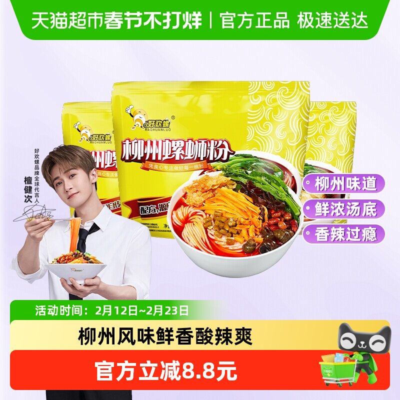粮油调味/速食/干货/烘焙 好欢螺螺蛳粉柳州特产美食螺丝粉方便面速食400g*3袋螺狮粉酸辣粉