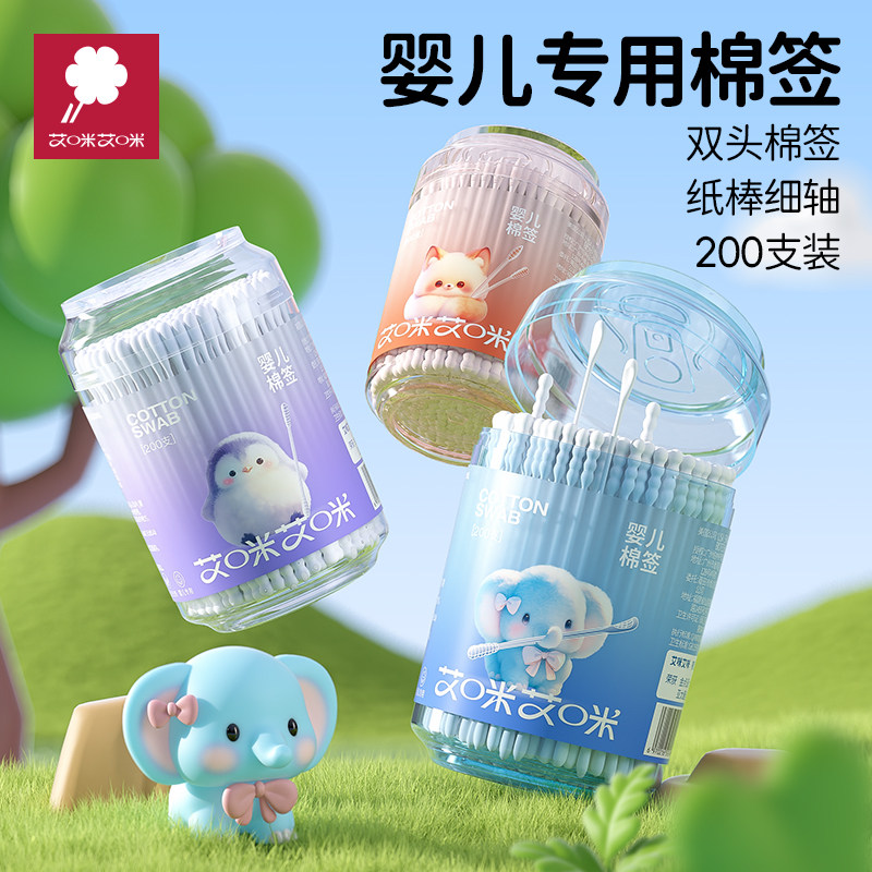 婴童用品 艾咪婴儿棉签双头小棉签宝宝掏耳朵新生儿童清理耳鼻化妆专用棉棒