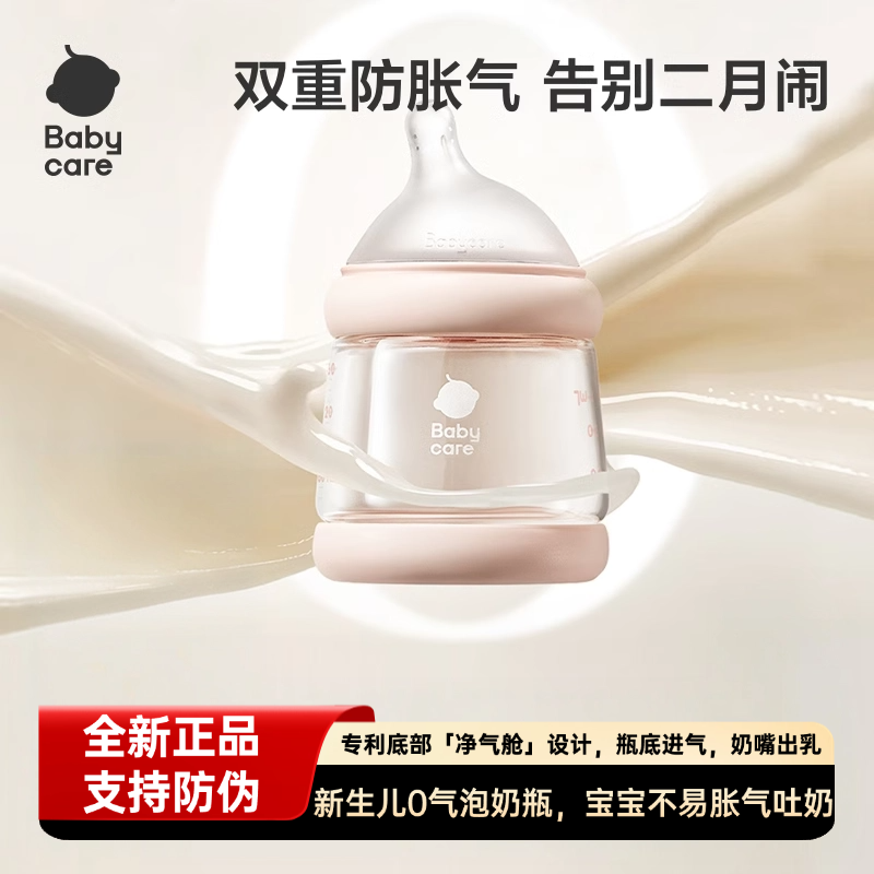 婴童用品 babycare防胀气玻璃奶瓶0气泡新生儿宽口径仿母乳1-6个月歪头奶瓶