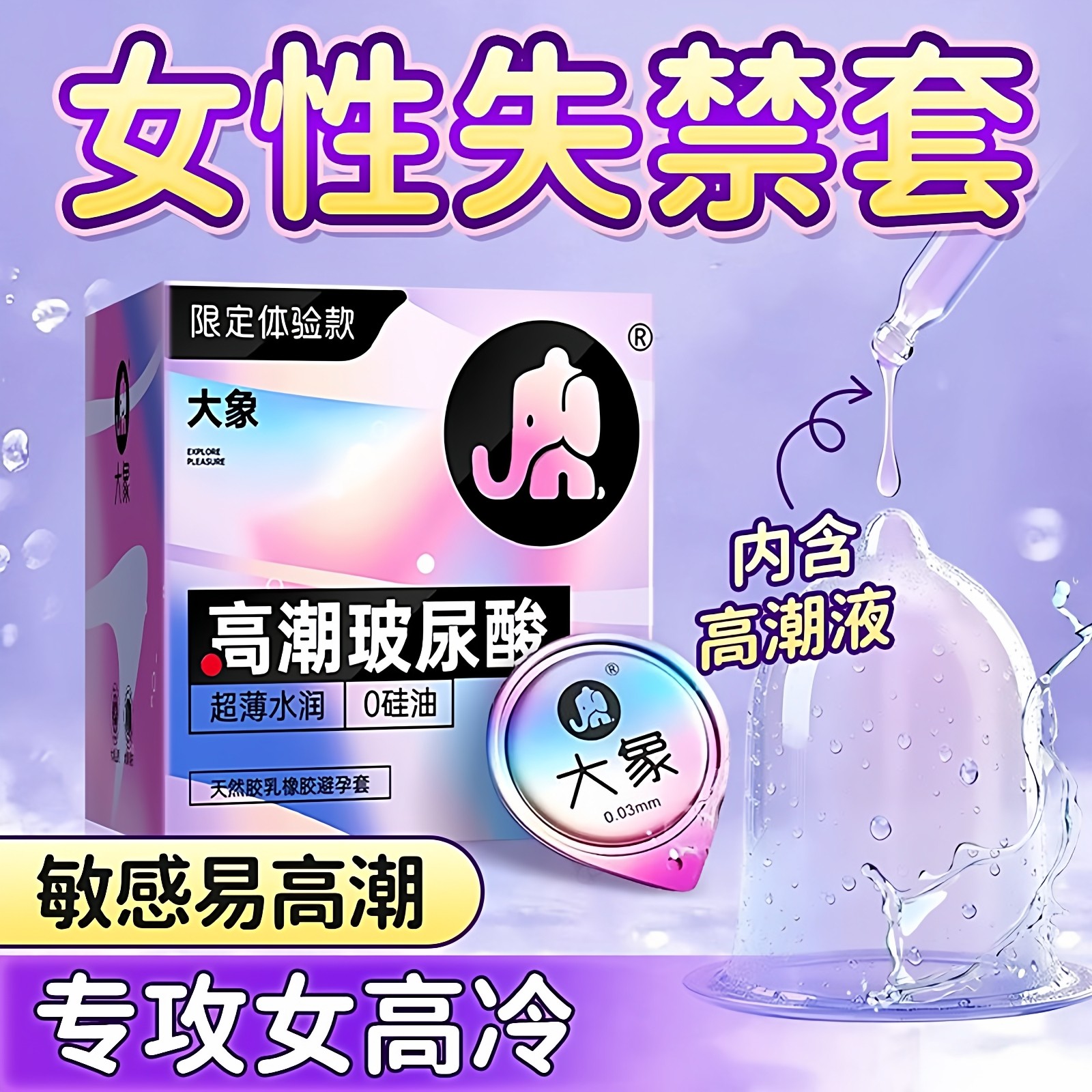 计生用品 大象避孕套高潮女生玻尿酸成人男用安全套持久byt正品超薄旗舰店