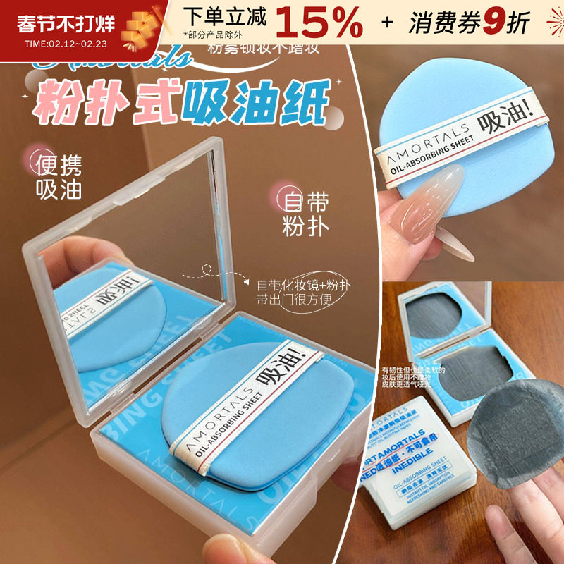 彩妆/香水/美妆工具 尔木萄粉扑式吸油纸女士男面部清爽微粉乳霜吸油面纸脸部补妆便携