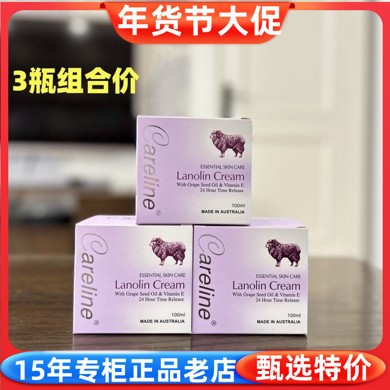 美容护肤/美体/精油 3瓶组合价 澳洲Careline柯蓝葡萄籽绵羊油100g面霜滋润保湿 28年