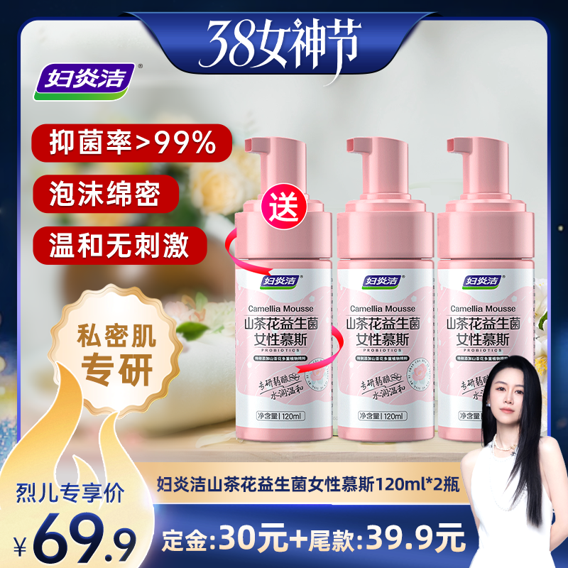 洗护清洁剂/卫生巾/纸/香薰 【先加购!24号烈儿0元付定】妇炎洁私处洗护液慕斯益生菌清洗液