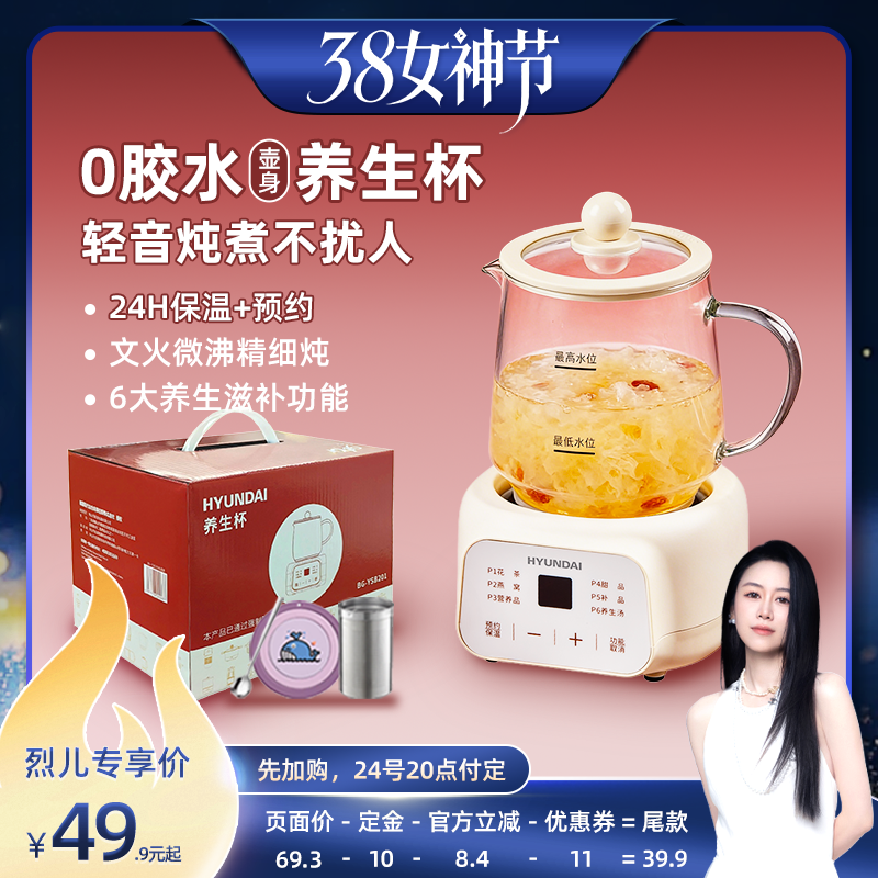 厨房电器 【先加购!24号烈儿0元付定】HYUNDAI全玻璃养生壶小型办公室泡茶