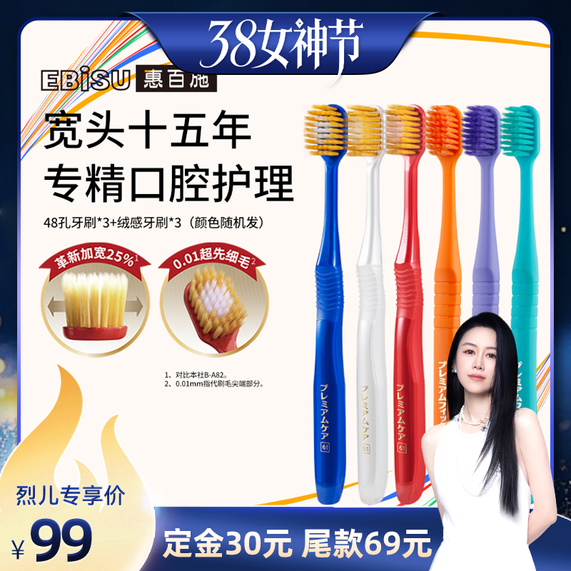 洗护清洁剂/卫生巾/纸/香薰 【先加购!24号烈儿0元付定】惠百施宽头48孔绒感牙刷家庭组合装