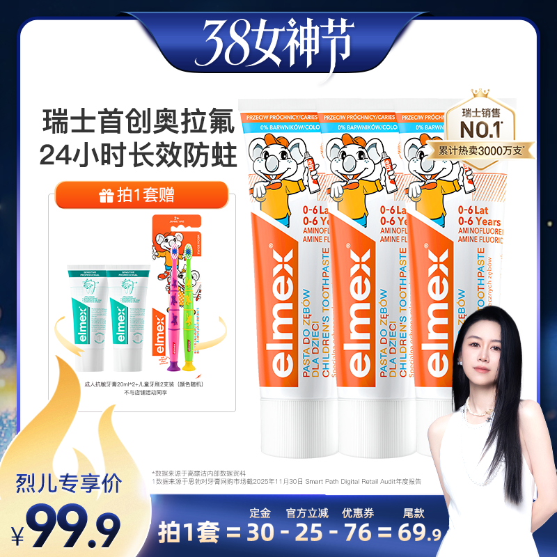 洗护清洁剂/卫生巾/纸/香薰 【先加购!24号烈儿0元付定】elmex艾美适0-6-12含氟防蛀儿童牙膏