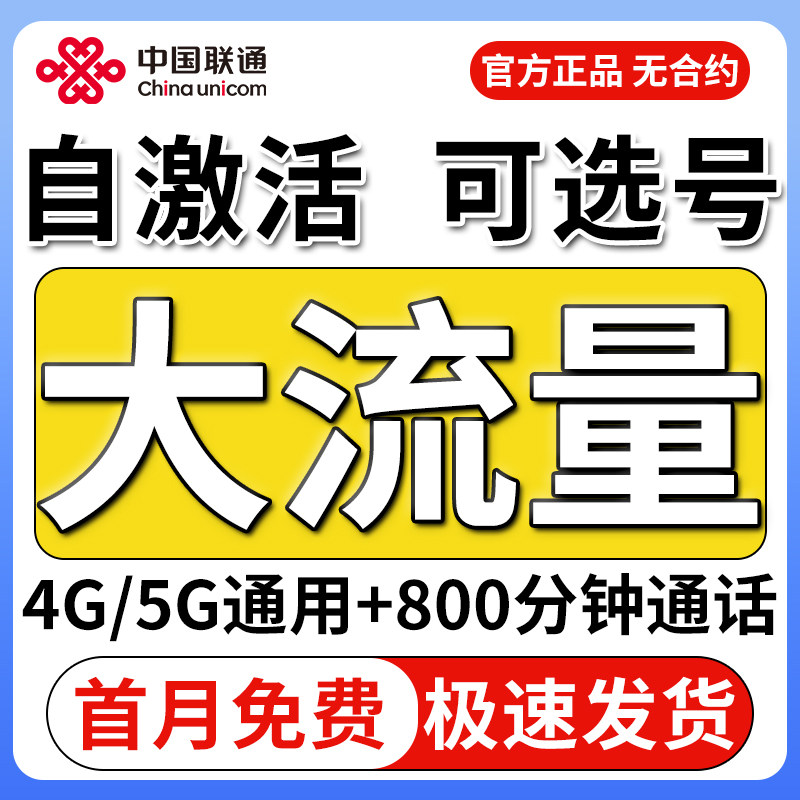 手机号码/套餐/增值业务 中国联通流量卡纯流量上网卡无线限流量卡全国通用手机卡电话卡5G
