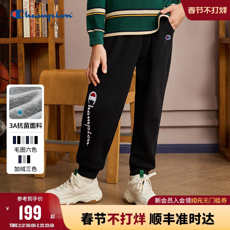 童装/婴儿装/亲子装 Champion冠军男女童装冬季新款经典刺绣标束脚运动加绒卫裤长裤