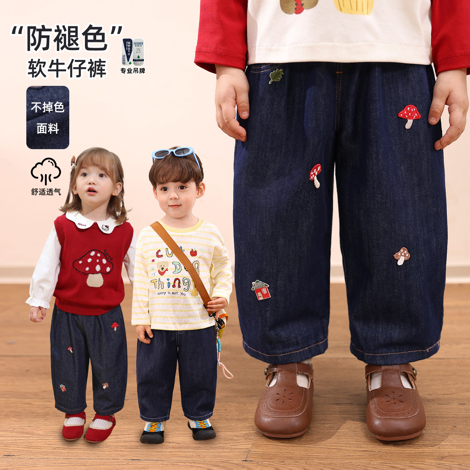 童装/婴儿装/亲子装 【软牛仔】小O爸婴童男女宝宝牛仔裤子加绒2026新款春季婴儿长裤