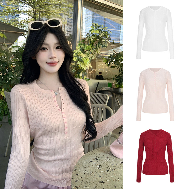 女装/女士精品 MosesQueen魔西女王粉色麻花毛衣女内搭打底修身半开领针织衫上衣
