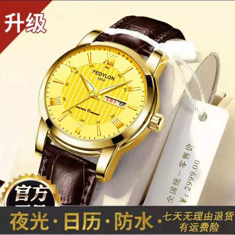 手表 【低价捡漏】瑞士全自动机械手表土豪金双日历夜光防水男士名牌表