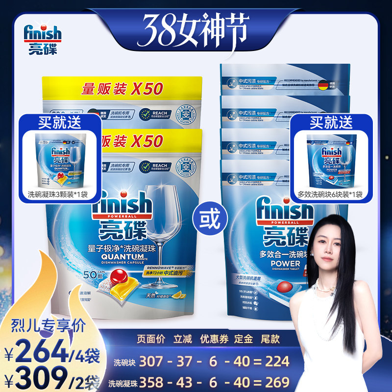 洗护清洁剂/卫生巾/纸/香薰 【先加购!24号烈儿0元付定】finish亮碟洗碗凝珠/大多效洗碗块