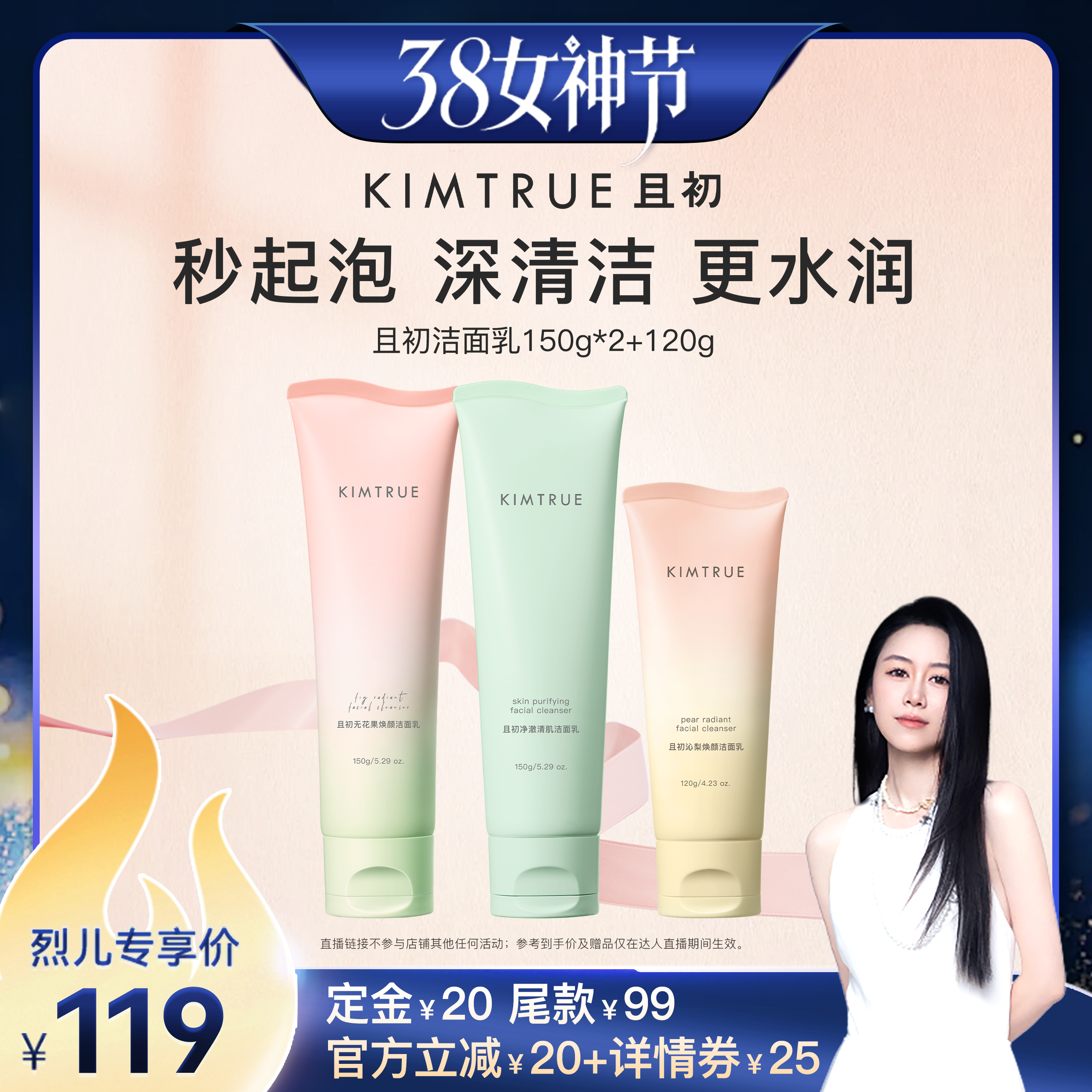 美容护肤/美体/精油 【先加购!24号烈儿0元付定】KIMTRUE且初无花果洁面乳洗面奶