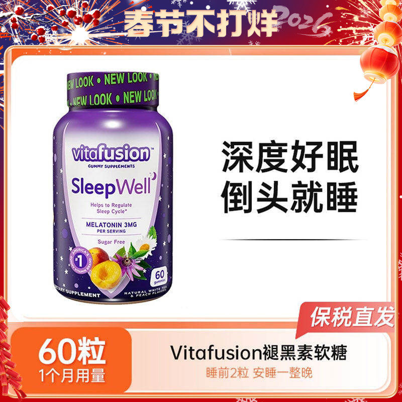 婴童食品 vitafusion褪黑素软糖60粒睡眠糖低卡0蔗糖习惯熬夜刷手机难眠