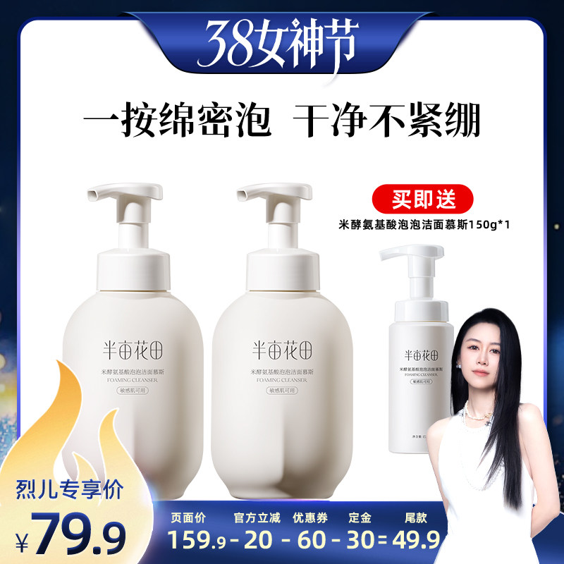 美容护肤/美体/精油 【先加购!24号烈儿0元付定】半亩花田米酵氨基酸洁面慕斯清洁wl1