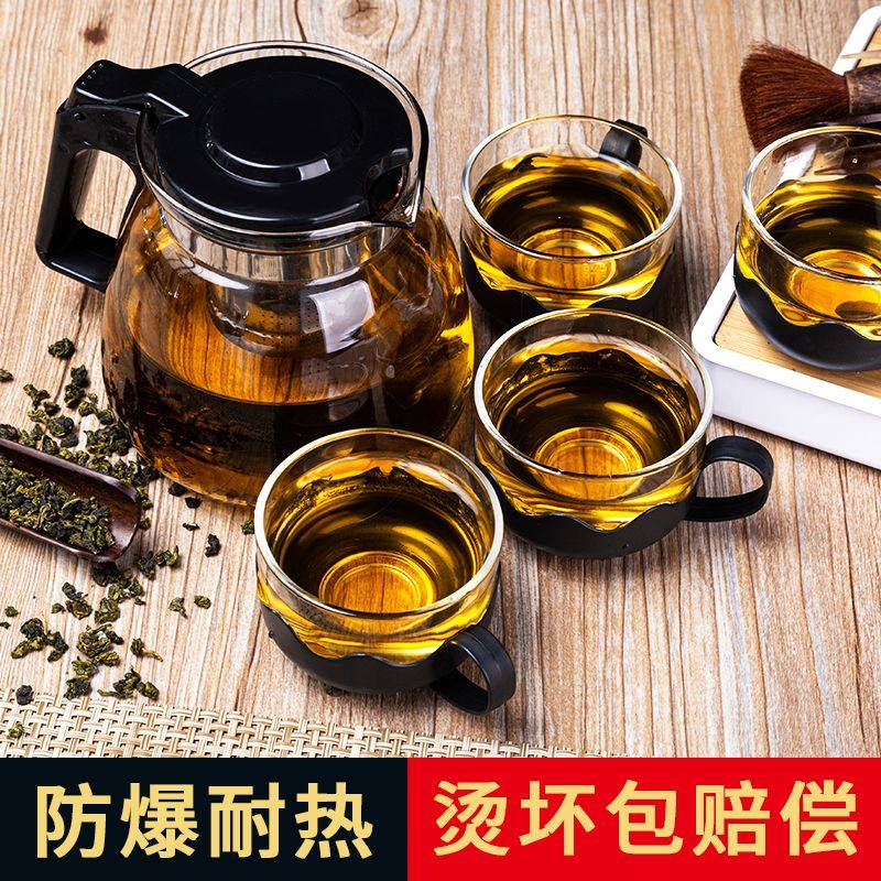 餐饮具 9.9包邮/5件套茶具一壶四杯透明家用耐热带盖水具套装功夫泡茶壶
