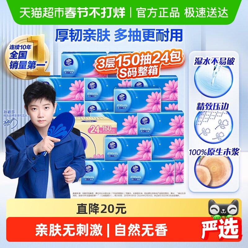 洗护清洁剂/卫生巾/纸/香薰 【下拉详情页享优惠】维达超韧抽纸3层S码家用餐巾纸面巾纸整箱装