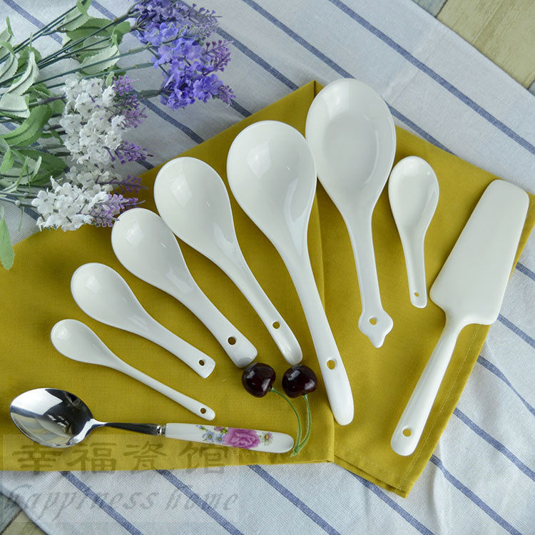 餐饮具 满9.9包邮 陶瓷纯白勺子家用中餐汤勺面勺创意汤匙调羹咖啡搅拌勺